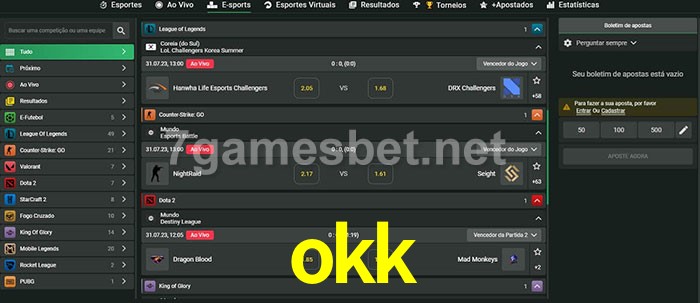 O okk oferece uma grande seleção de opções de apostas em e-sports com probabilidades competitivas